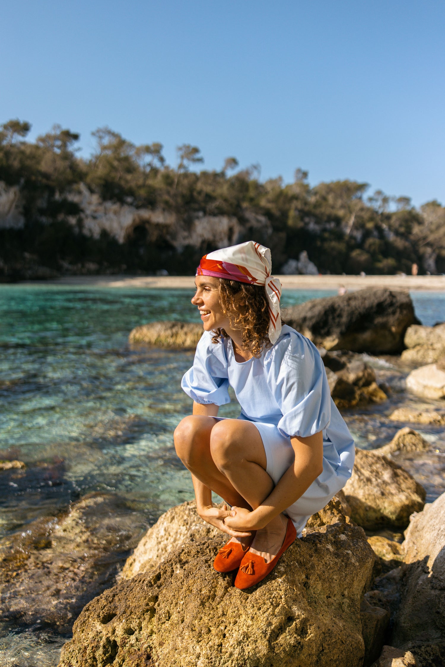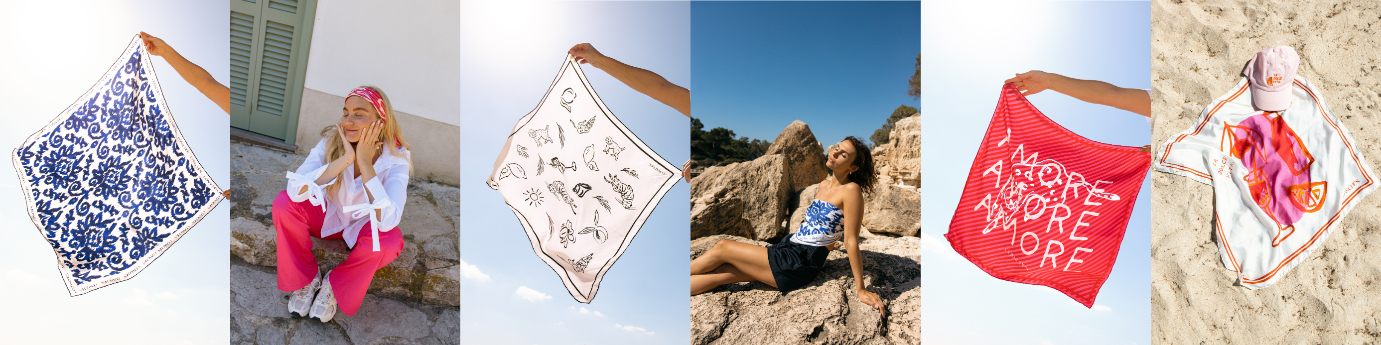 Gefertigt aus 100 % feinster Seide, in Italien hochwertig produziert und handgerollt, sind diese Tücher nicht nur ein visuelles Statement, sondern auch ein haptisches Erlebnis. Leicht, weich und vielseitig einsetzbar – ob als Haarband, Halstuch, Top oder Accessoire an Tasche oder Gürtel: der